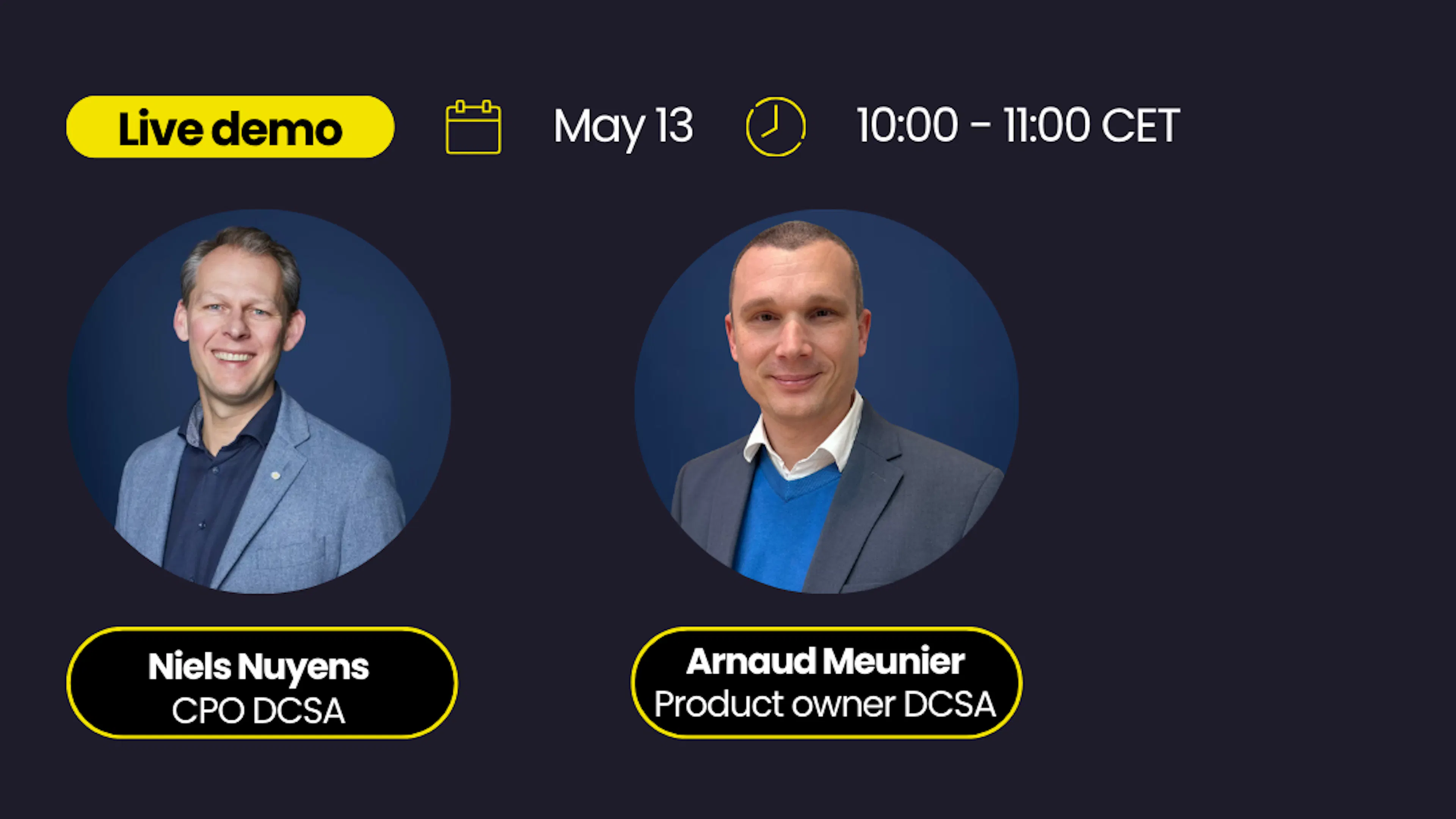 Join our live demo on 13 May, 10:00–11:00 CET to see DCSA’s latest solution, Identity Exchange, in action. Ask our experts your questions live!